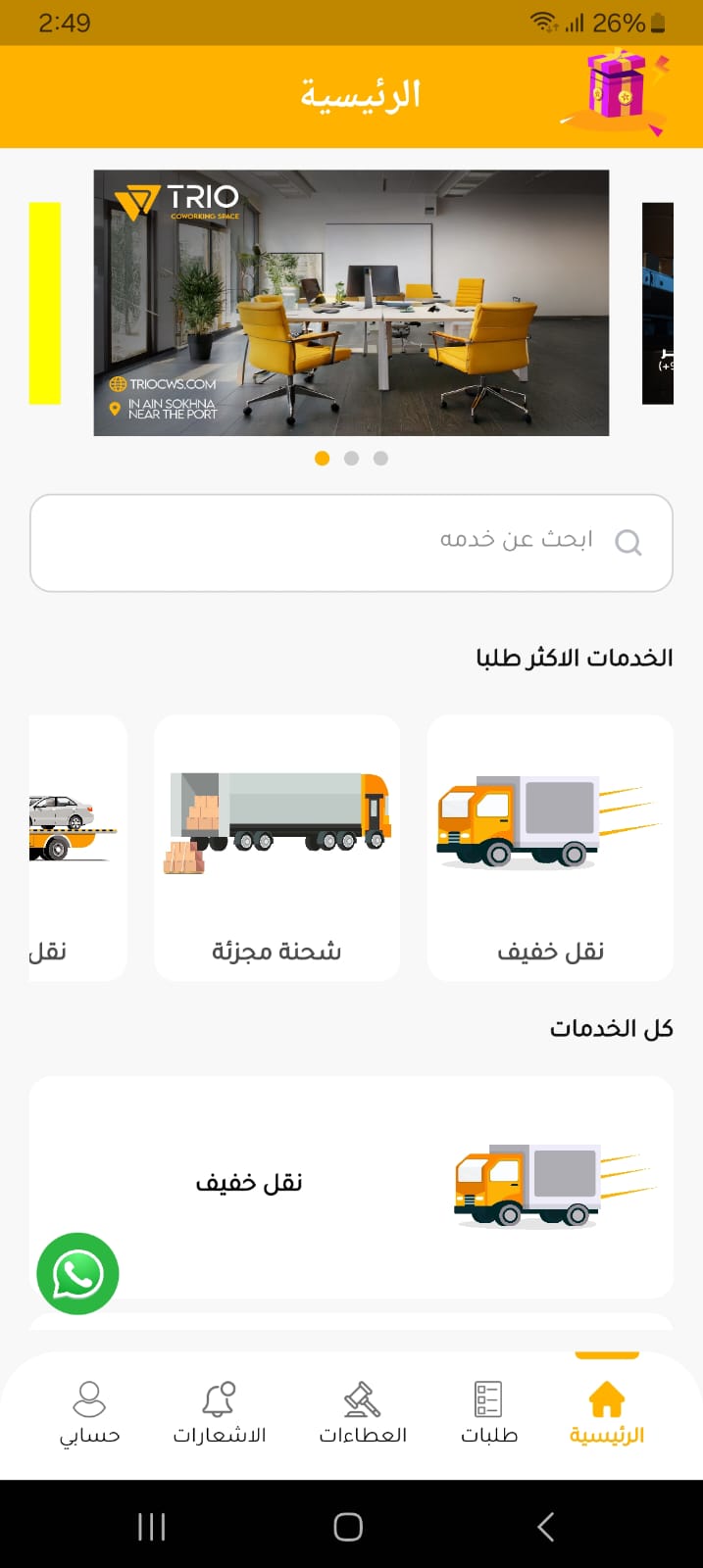 يوفر النظام مجموعة متنوعة من خدمات النقل لتلبية احتياجات العملاء تشمل النقل الثقيل و الخفيف , نقل السيارات , نقل الأثاث , وخدمات التوصيل . كما يتيح خيارات متعددة للتخزين بمساحات مختلفة تحسب بالمتر .